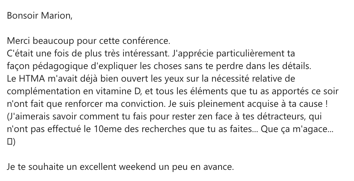 Je vous propose une conférence pour démêler la question, explorer le sujet en détails et déconstruire tout ce que vous pensiez savoir sur la vitamine D afin d’y réfléchir ensemble, de se questionner, et de creuser le sujet beaucoup plus en profondeur !